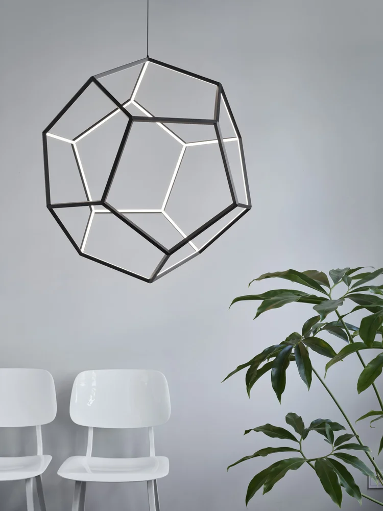 A suspended light inspired by the perfect mathematical shape of a dodecahedron. It allowsnatural light to pass through, while casting dynamic shadows when lit. Hence, the Dodeca is both complex and minimalist.